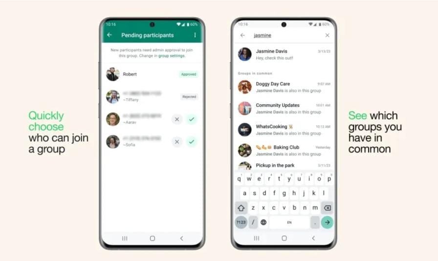 Pembaruan lainnya berfokus pada terhubung dengan orang lain di Komunitas pengguna. Tahun lalu, WhatsApp membuat Komunitas untuk memungkinkan banyak grup ada di bawah satu payung. Sekarang, platform perpesanan memudahkan untuk mengetahui grup mana yang pengguna miliki bersama. Nama grup akan muncul saat pengguna mencari di bawah nama kontak tertentu.
