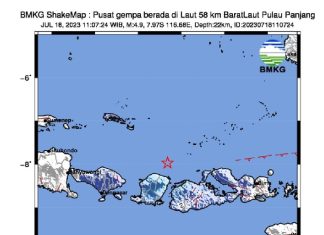 FirstIndonesiaMagz.id- Gempa bumi terjadi di Lombok, Nusa Tenggara Barat pada Selasa,18 Juli 2023 pukul 11:07:24 WIB.