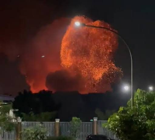 FirstIndonesiaMagz.id– Kebakaran melanda gudang bahan peledak di perbatasan antara Kabupaten Bogor dan Bekasi, Jawa Barat, Sabtu (30/3). Warga di cluster perumahan di Kota Wisata, Gunung Putri dievakuasi.