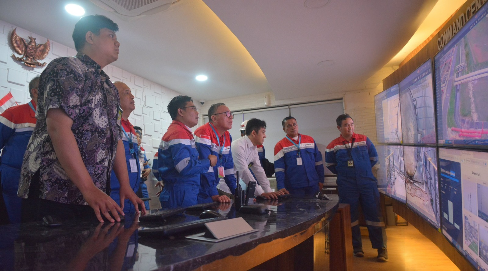Iriawan mengawali tinjauannya dengan mengunjungi Security Command Center, di mana ia mengamati dengan seksama sistem pengawasan keamanan terpadu melalui lebih dari 750 CCTV yang tersebar di titik-titik vital perimeter dalam dan luar kilang.