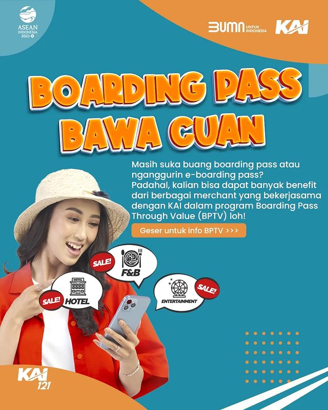 FirstIndonesiaMagz.id– Pelanggan kereta api dapat memiliki banyak benefit dari berbagai merchant yang bekerja sama dengan PT Kereta Api Indonesia (Persero) dalam program Boarding Pass Through Value (BPTV). BPTV adalah program kerja sama KAI dengan beragam mitra atau merchant seperti hotel, tempat penginapan, tempat wisata, restoran, wahana rekreasi, rumah sakit, dan klinik kesehatan.