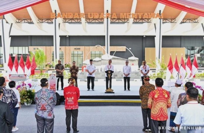 FirstIndonesiaMagz.id- Joko Widodo bersama Menteri Perhubungan Budi Karya Sumadi meresmikan Bandara Mentawai, Kabupaten Kepulauan Mentawai, Sumatera Barat pada Kamis (25/10).